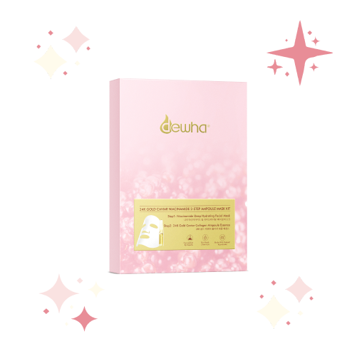 A 2-step ampoule mask kit that combines a Niacinamide Deep Hydrating Facial Mask and 24K Gold Caviar Collagen Ampoule Essence - a breakthrough pioneering product in Southeast Asia. Features a potent mix of 24k real gold and sturgeon caviar essence, a luxurious high value cosmetic ingredient packed with essential amino acids and peptides, to promote skin regeneration and fight against skin-aging. This 2-Step mask kit is your alternative to achieve similar baby glow effects of popular cosmetic injections at the comfort of your own home.