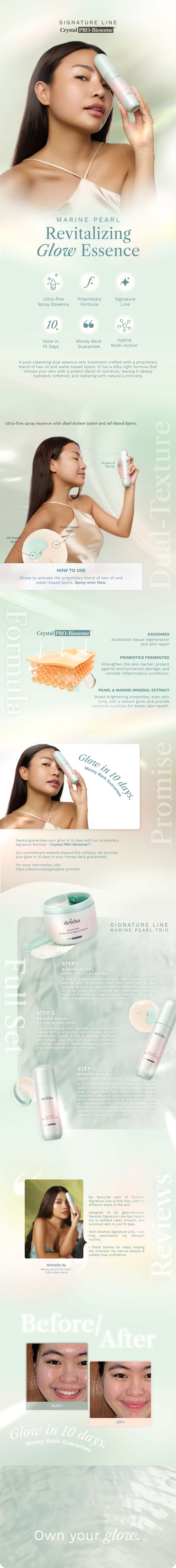 A post-cleansing dual essence skin treatment crafted with a proprietary blend of two oil and water-based layers with a silky-light formula to leave your skin deeply hydrated, soft and glowing. The Signature Line Marine Pearl Revitalizing Glow Essence is formulated with our proprietary Crystal PRO-Biosome™, which stimulates skin regenerative processes with Exosomes, Probiotics and Pearl & Marine Extract to help you glow in just 10 days.